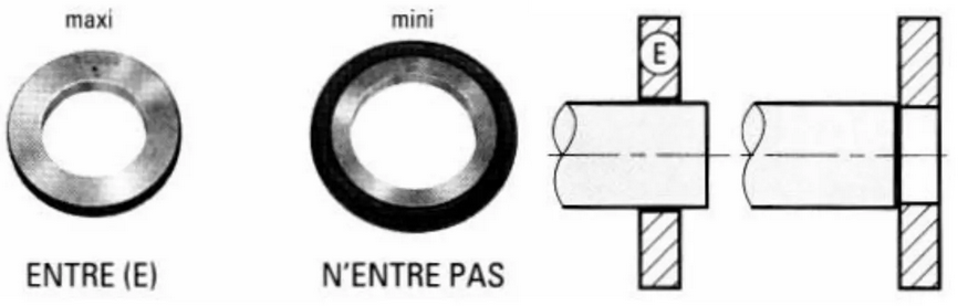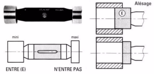Pour assurer l'interchangeabilité des pièces, on les cote souvent à l'aide d'ajustement fixant ainsi une cote mini et une cote maxi. Pour vérifier ces pièces, on utilise souvent des calibres à limites.