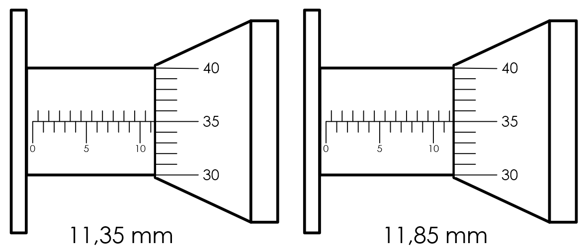 De 51 à 99 centièmes, il faut ajouter 0,5 mm visible sur la douille graduée pour obtenir la valeur exacte.