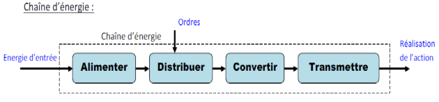 Dans un système automatisé, on appelle une chaîne d'énergie l'ensemble des procédés qui vont réaliser une action.