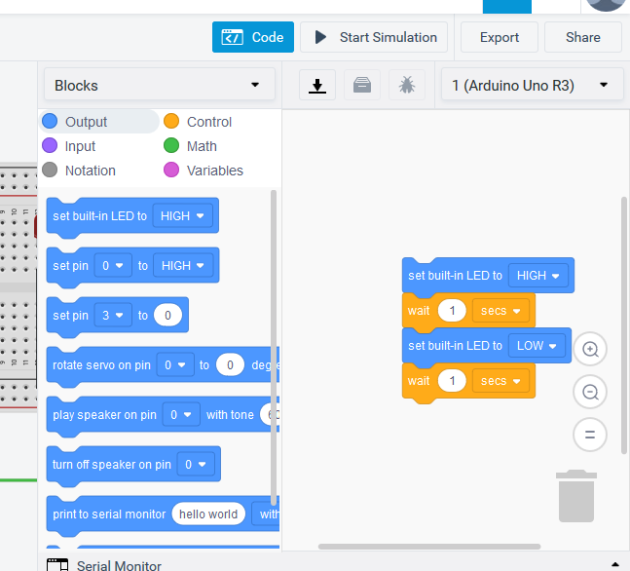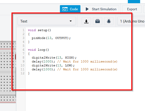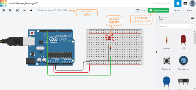 - Copier le code programme dans Tinkercad.