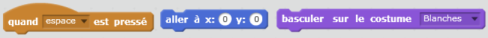 Tous les habits présentés dans l'armoire peuvent être rangés immédiatement en cliquant sur la barre espace. Un programme a déjà été placé sur chaque lutin pour réaliser cette action.
