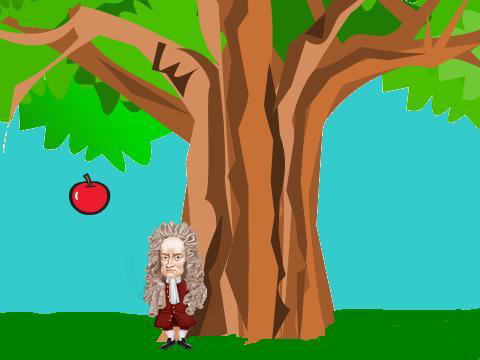 C'est l'automne, les pommes tombent des arbres. Isaac Newton aimerait éviter de recevoir une pomme sur la tête, mais il ne peut pas se déplacer. Saurais-tu le programmer pour qu'il puisse se déplacer vers la droite et vers la gauche, en utilisant les flèches de ton clavier ?