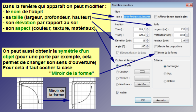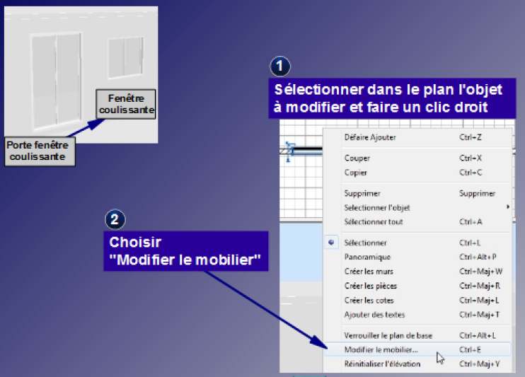 On souhaite modifier l'objet existant "Porte-fenêtre coulissante" en un nouvel objet "Fenêtre coulissante"