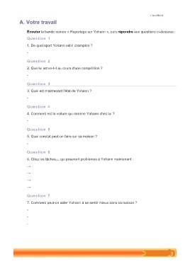Écouter la bande sonore « Reportage sur Yohann », puis répondre aux questions ci-dessous :