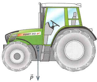 En statique, le vecteur en bleu sur le tracteur désigne l'action de la pesanteur sur le tracteur :