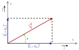 Équation en notation Latex : \overrightarrow{V} = {V_x}.\overrightarrow{i} + {V_y}.\overrightarrow{j}