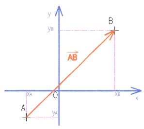 Équation en notation Latex : \overrightarrow{AB} \: \binom{X_B - X_A}{Y_B - Y_A}