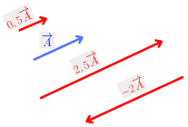 Si Équation en notation Latex : \overrightarrow{A} a pour intensité 100 N, les intensités de Équation en notation Latex : 0,5\overrightarrow{A}, de Équation en notation Latex : 2,5\overrightarrow{A} et de Équation en notation Latex : -2\overrightarrow{A} seront respectivement de 50 N, 250 N et 200 N.