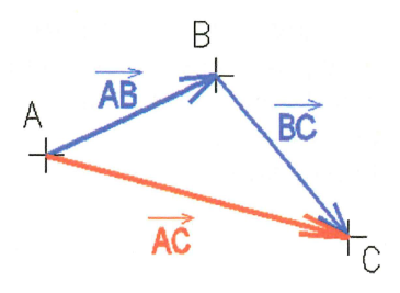 Équation en notation Latex : \overrightarrow{AB} + \overrightarrow{BC} = \overrightarrow{AC}