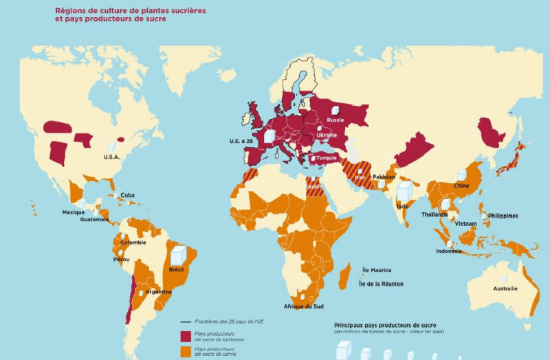 Grandes zones maraîchères en Espagne, aux Pays-Bas (production sous serre), et en Amérique du Nord (Californie).