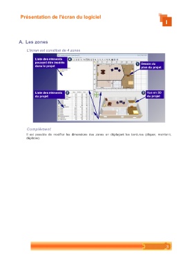 Présentation de l'écran du logiciel I I- A. Les zones L'écran est constitué de 4 zones Complément Il est possible de modifier les dimensions des zones en déplaçant les bordures (cliquer, maintenir, déplacer) 3
