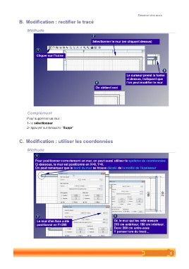 Dessiner des murs B. Modification : rectifier le tracé Méthode Complément Pour supprimer un mur : 1- le sélectionner 2- appuyer sur la touche "Suppr" C. Modification : utiliser les coordonnées Méthode 6